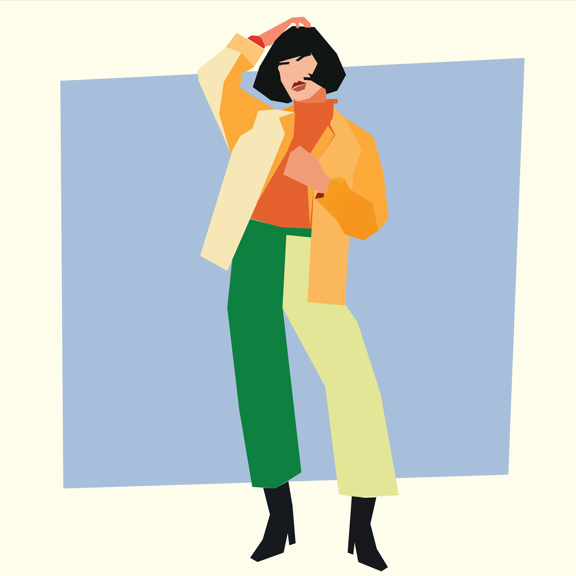 Geometric portraits primarily focused on fashion, but there's also a cute penguin in the bunch.